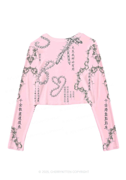 Born To Slay Y2K Mesh Long Sleeve Crop Top Cherrykitten
