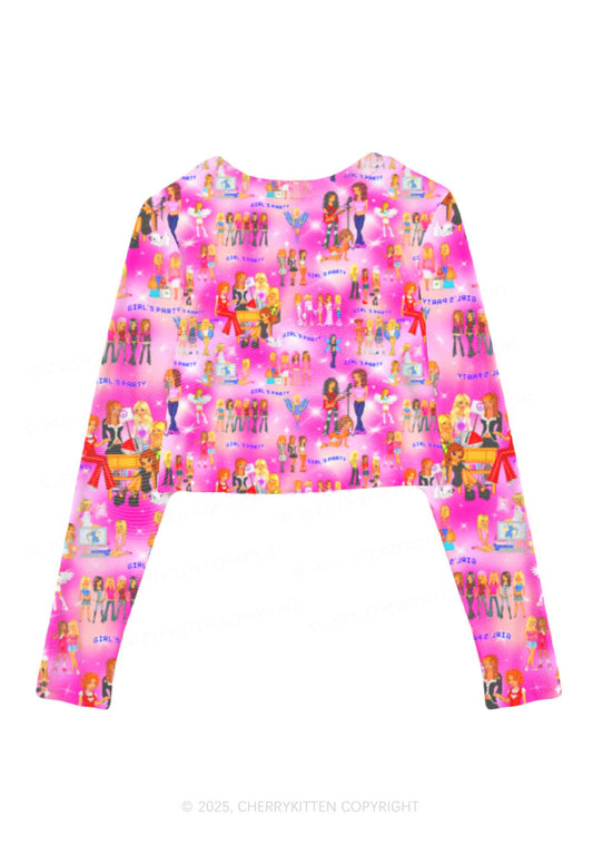 Girls Party Y2K Mesh Long Sleeve Crop Top Cherrykitten