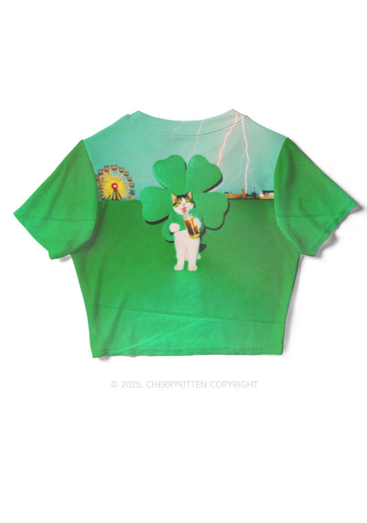 Lucky Cat St Patricks Y2K Mesh Crop Top Cherrykitten