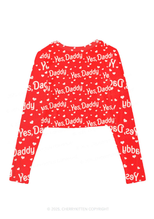 Yes Daddy Y2K Mesh Long Sleeve Crop Top Cherrykitten