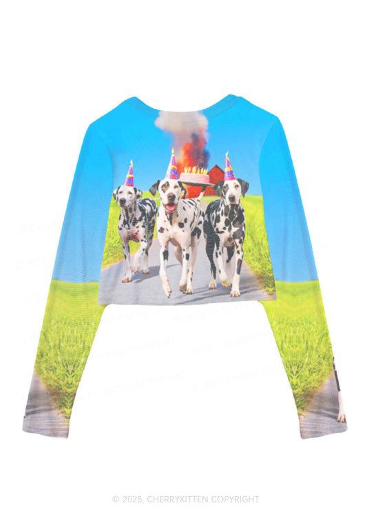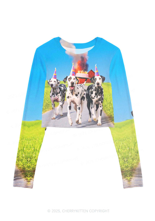 Dogs Birthday Party Y2K Mesh Long Sleeve Crop Top Cherrykitten