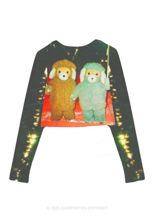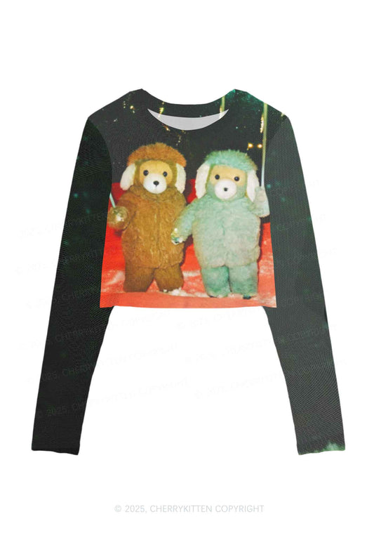 Bear Friends Y2K Mesh Long Sleeve Crop Top Cherrykitten