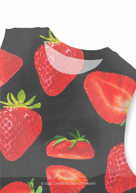 Black Strawberry Y2K Mesh Muscle Tank Cherrykitten