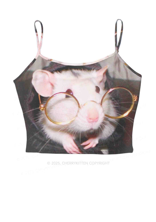 Glasses Rat Y2K Mesh Cami Tank Cherrykitten