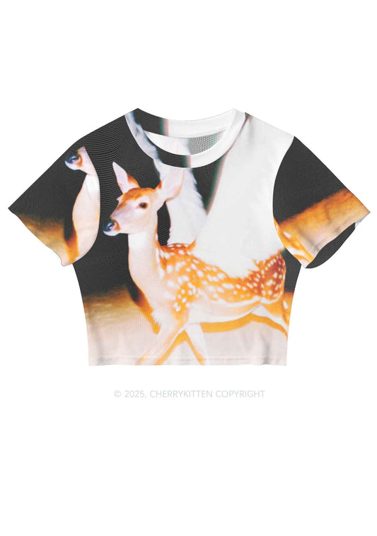 Forest Deer Y2K Mesh Crop Top Cherrykitten