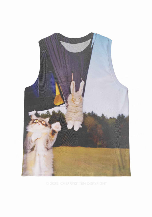 Girls Airplane Race Y2K Mesh Muscle Tank Cherrykitten
