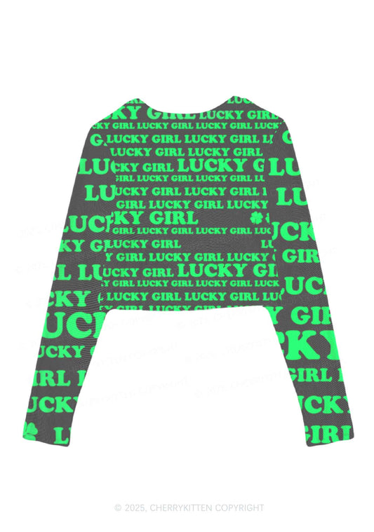 Lucky Girl Y2K Mesh Long Sleeve Crop Top Cherrykitten