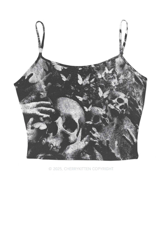Halloween Gothic Skull Y2K Mesh Cami Tank Cherrykitten