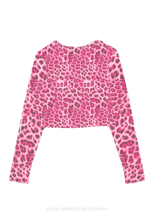 Pink Leopard Y2K Mesh Long Sleeve Crop Top Cherrykitten