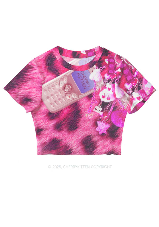 Pink Plush Phone Y2K Mesh Crop Top Cherrykitten