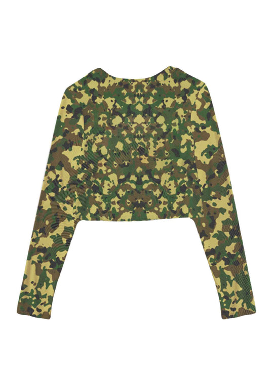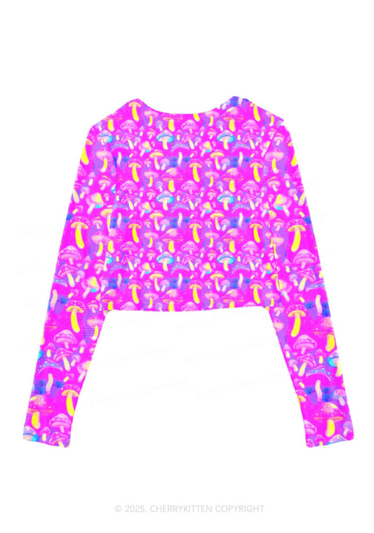 Trippy Mushrooms Y2K Mesh Long Sleeve Crop Top Cherrykitten