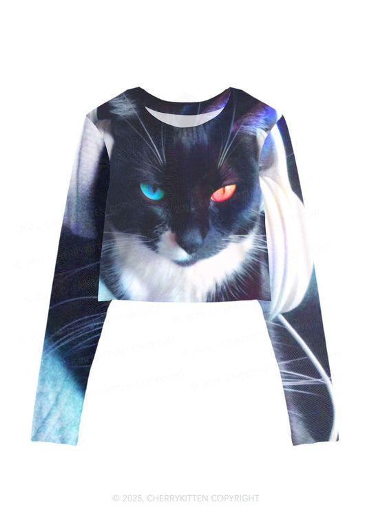 Odd Eyed Cat Y2K Mesh Long Sleeve Crop Top Cherrykitten
