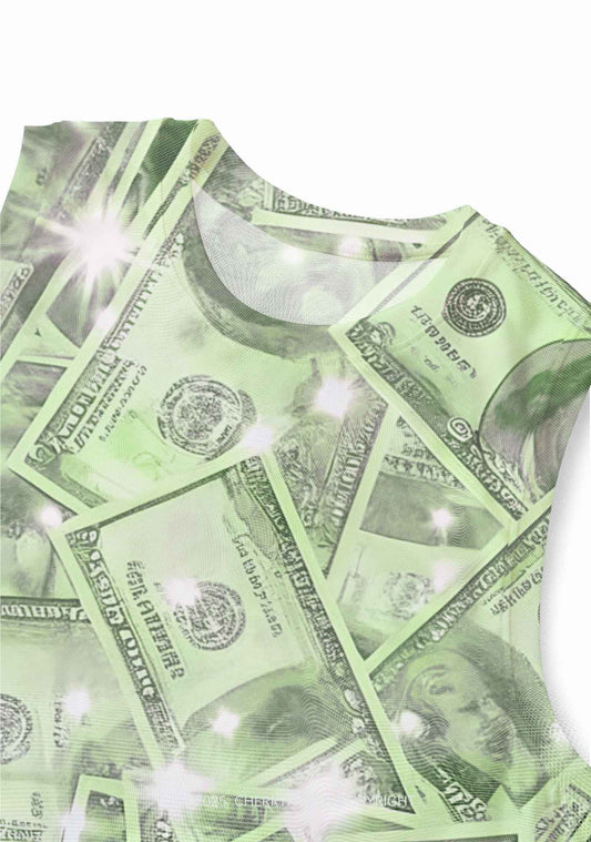 Green Shiny Money Y2K Mesh Muscle Tank Cherrykitten