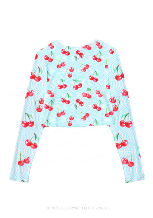 Blue Cherry Y2K Mesh Long Sleeve Crop Top Cherrykitten