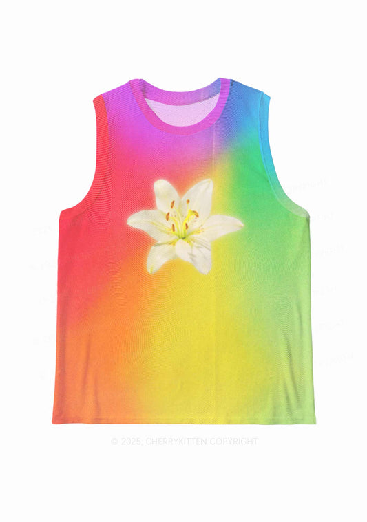 Rainbow Lily Pride Y2K Mesh Muscle Tank Cherrykitten