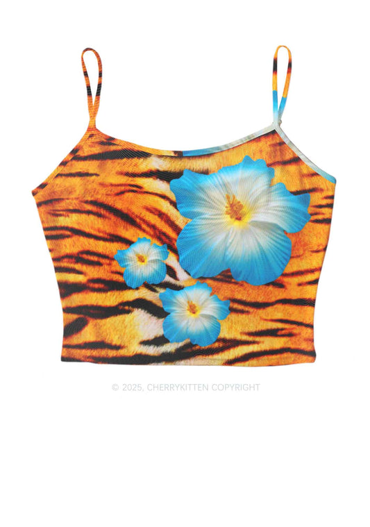 Tiger With Flowers Y2K Mesh Cami Tank Cherrykitten