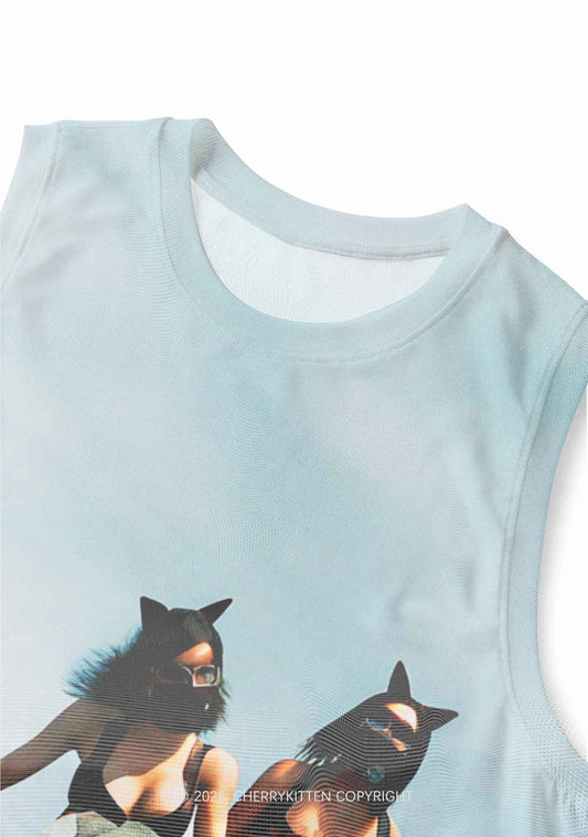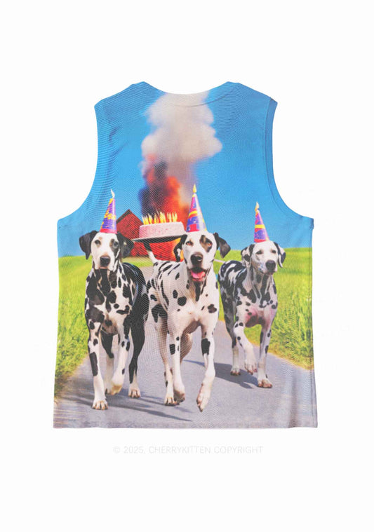 Dogs Birthday Party Y2K Mesh Muscle Tank Cherrykitten