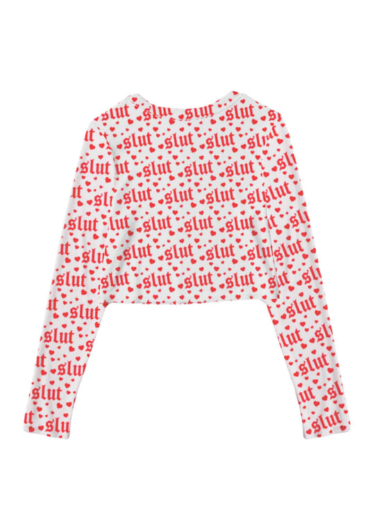 Slxt Red Heart Y2K Mesh Long Sleeve Crop Top Cherrykitten