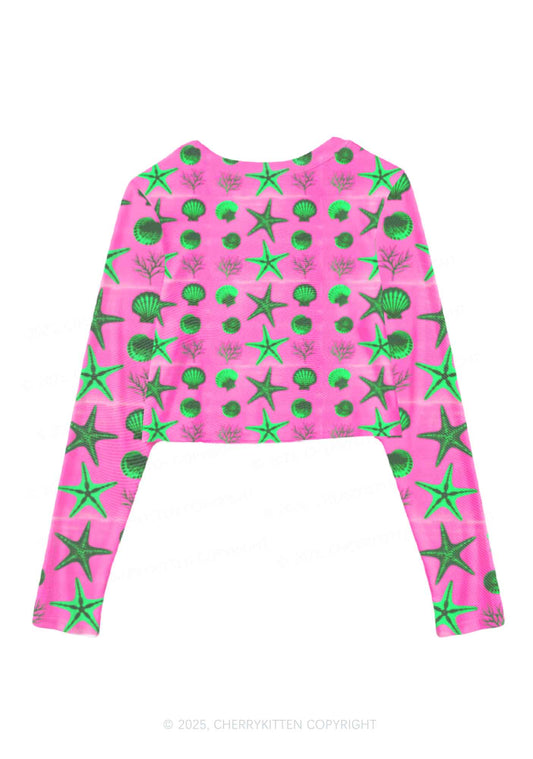 Sea Animals Y2K Mesh Long Sleeve Crop Top Cherrykitten