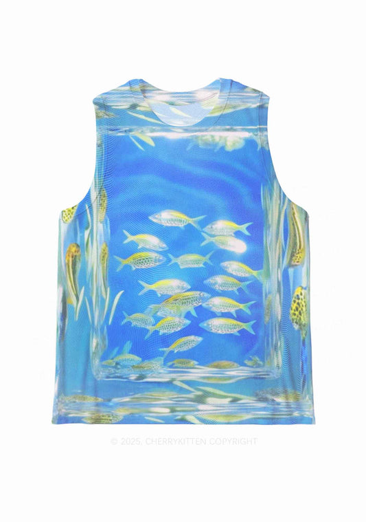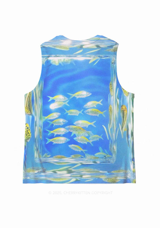 Undersea Fish Y2K Mesh Muscle Tank Cherrykitten
