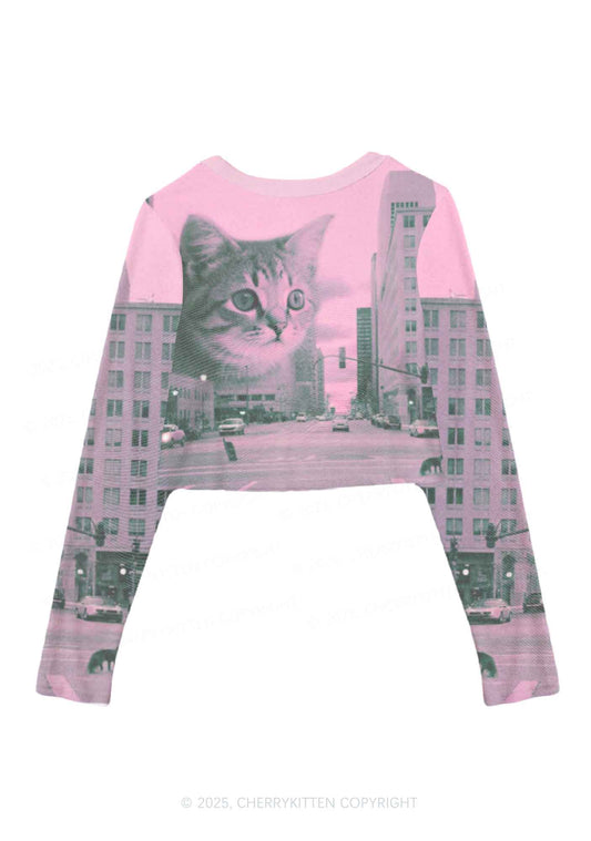 Cat Road Y2K Mesh Long Sleeve Crop Top Cherrykitten