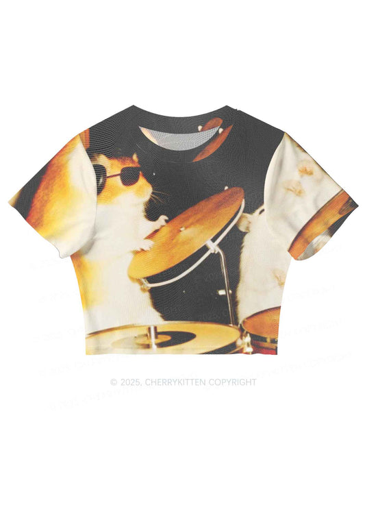 Rats Drummer Y2K Mesh Crop Top Cherrykitten