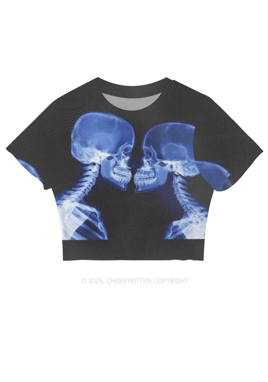 X Ray Skull Kiss Y2K Mesh Crop Top Cherrykitten