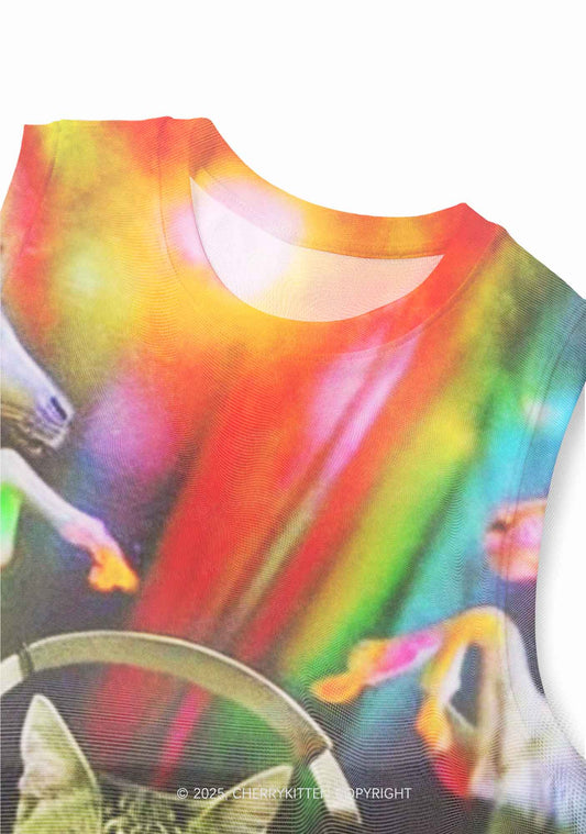 DJ Cat Unicorn Y2K Mesh Muscle Tank Cherrykitten