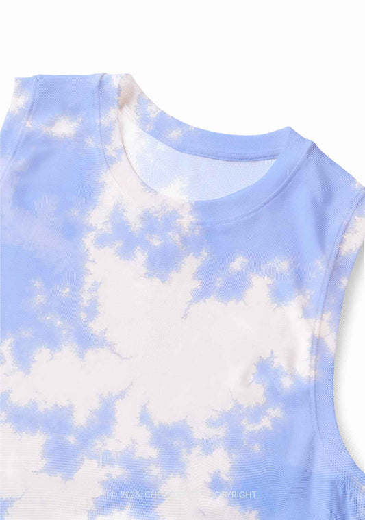 Blue Sky White Clouds Y2K Mesh Muscle Tank Cherrykitten