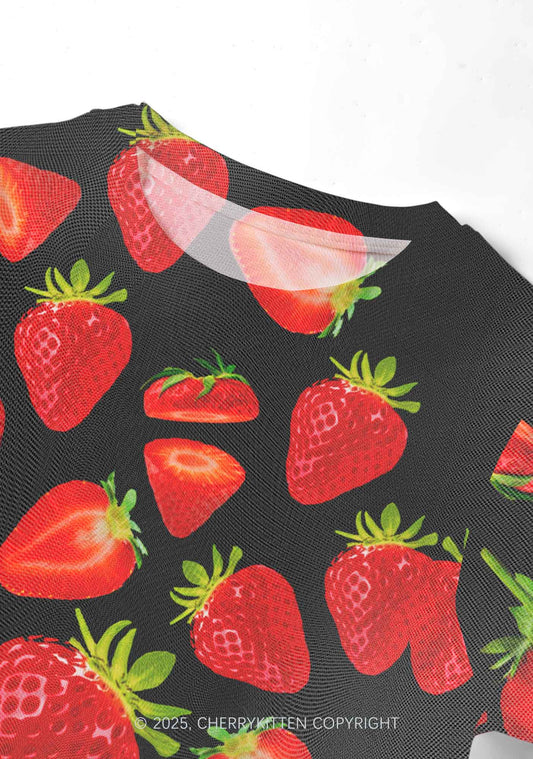 Black Strawberry Y2K Mesh Crop Top Cherrykitten