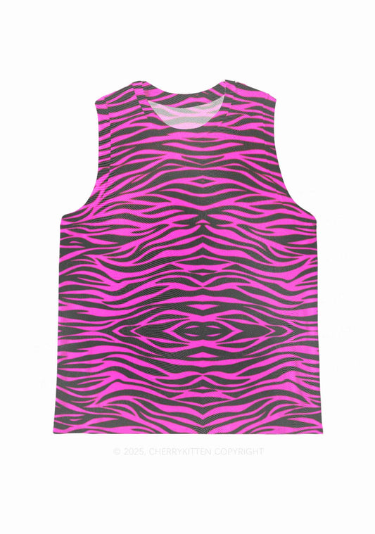 Pink Zebra Y2K Mesh Muscle Tank Cherrykitten