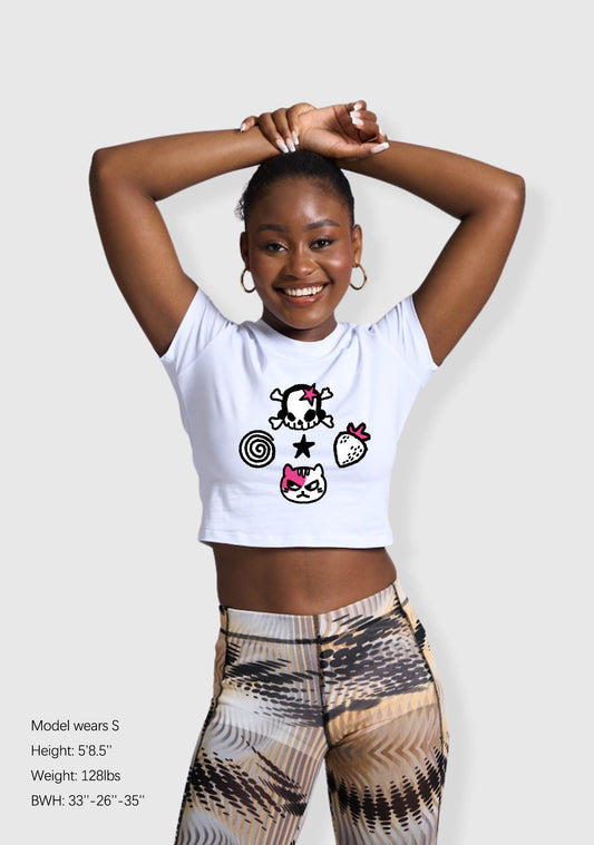 Skull Strawberry Cat Stars Y2K Baby Tee