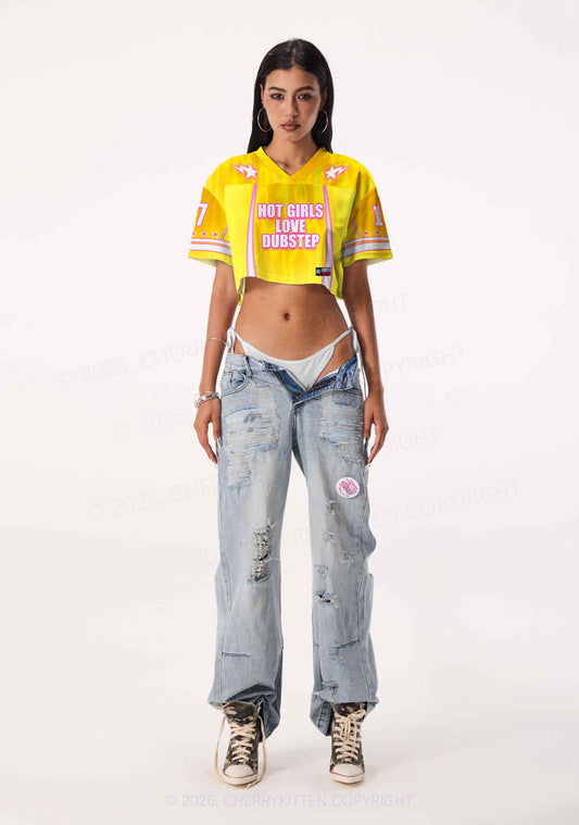 Hot Girls Love Dubstep Y2K Crop Sport Jersey Shirts Cherrykitten