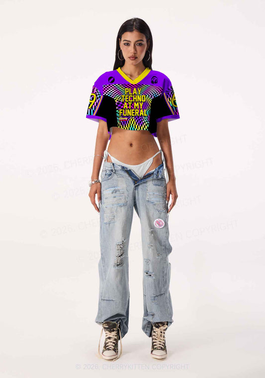 Play Techno At My Funeral Y2K Crop Sport Jersey Shirts Cherrykitten