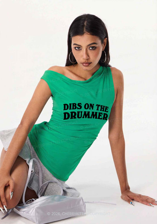 Dibs On The Drummer Y2K Off Shoulder Tank Top Cherrykitten