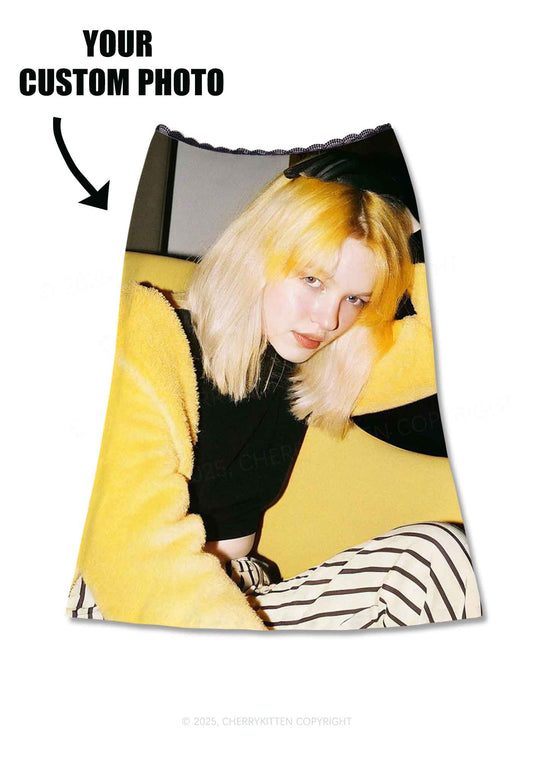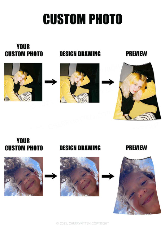 Custom Personalized Photo Y2K Print Midi Skirt Cherrykitten
