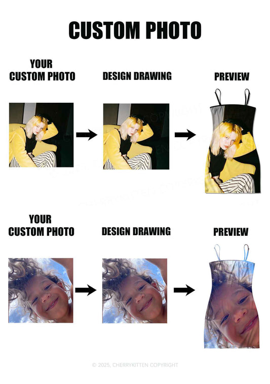 Custom Personalized Photo Y2K Print Slip Dress Cherrykitten