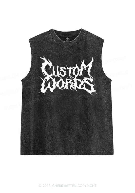 Custom Text Punk Font Y2K Washed Muscle Tank Cherrykitten