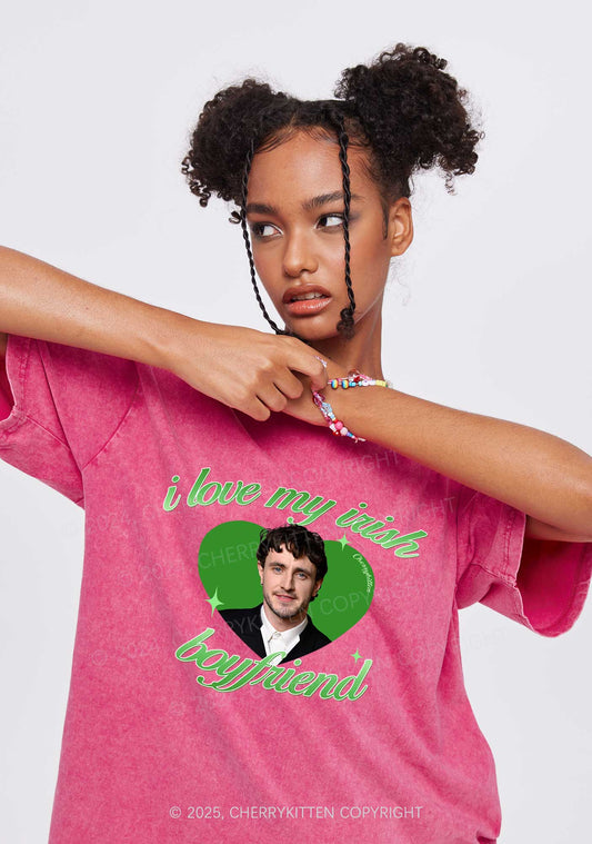 Love My Irish Boyfriend St Patricks Y2K Washed Tee Cherrykitten
