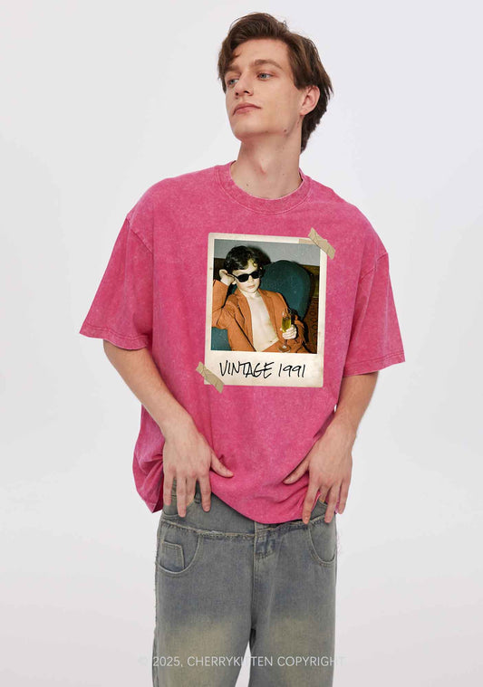 Custom Vintage Photo And Year Y2K Washed Tee Cherrykitten