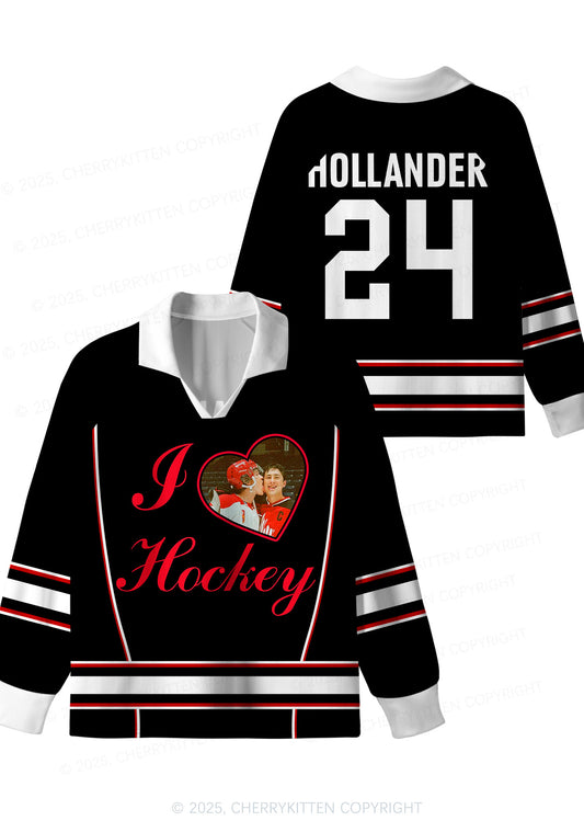 Black I Love Hockey HR Y2K Long Sleeve Sport Jersey Shirts Cherrykitten