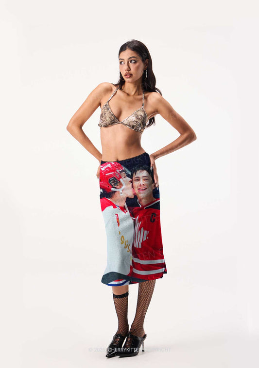 Couple Jersey HR Y2K Print Midi Skirt Cherrykitten