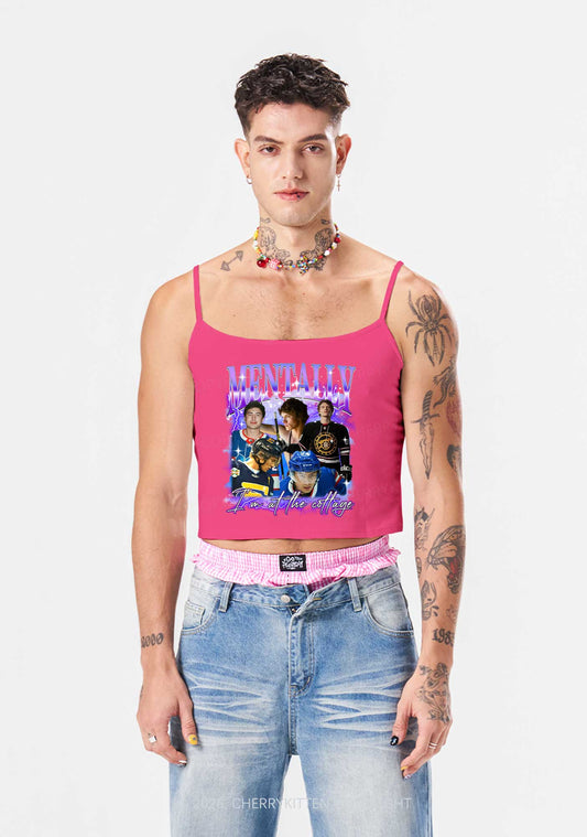 Purple Mentally At The Cottage HR Y2K Crop Tank Top Cherrykitten
