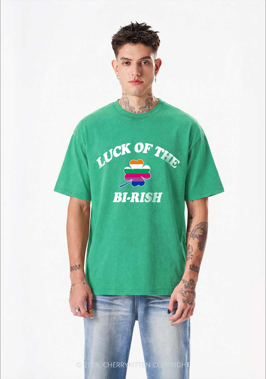 Luck Of The Bi Rish St Patricks Y2K Shirts Washed Tee Cherrykitten