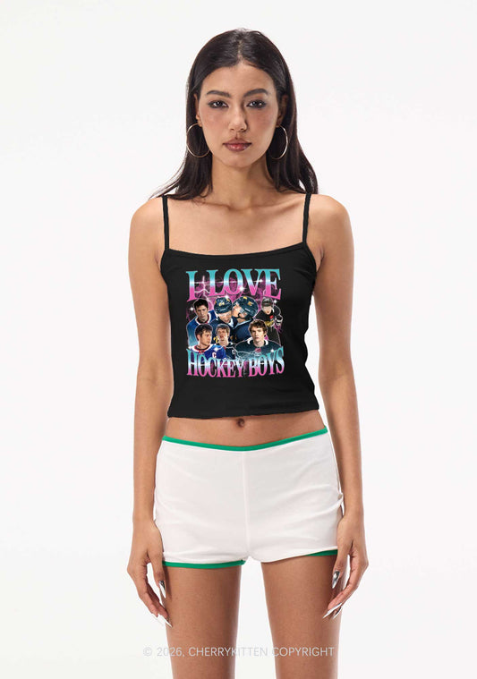 Pink Blue Gradient I Love Hockey Boys HR Y2K Spaghetti Strap Cami Cherrykitten