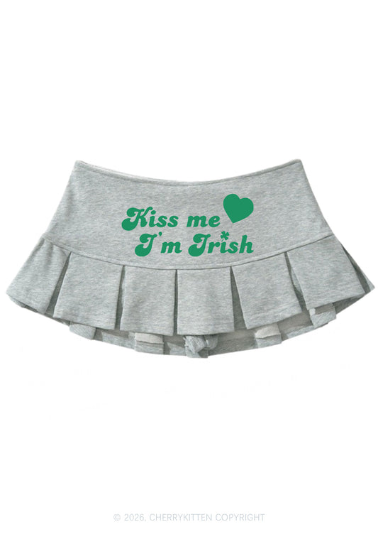 Kiss Me I'm Irish St Patricks Y2K Mini Pleated Skirts Cherrykitten