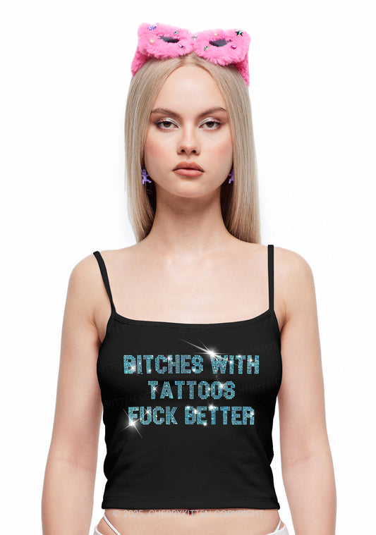 Rhinestone Bxxches With Tattoos Fxxk Better Y2K Spaghetti Strap Cami Cherrykitten