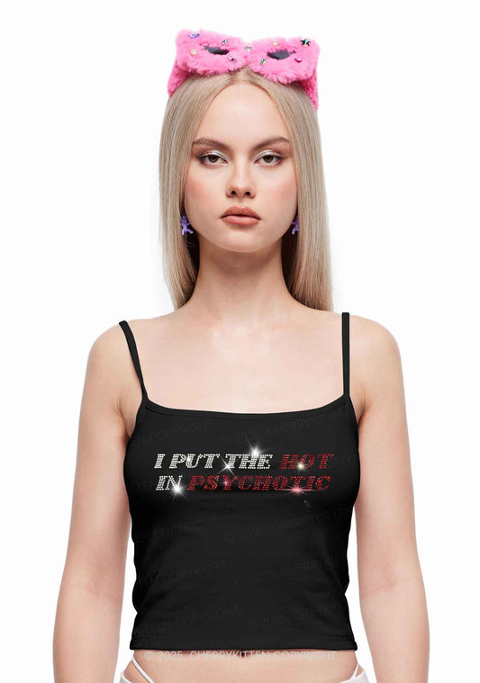 Rhinestone I Put The Hot In Psychotic Y2K Spaghetti Strap Cami Cherrykitten