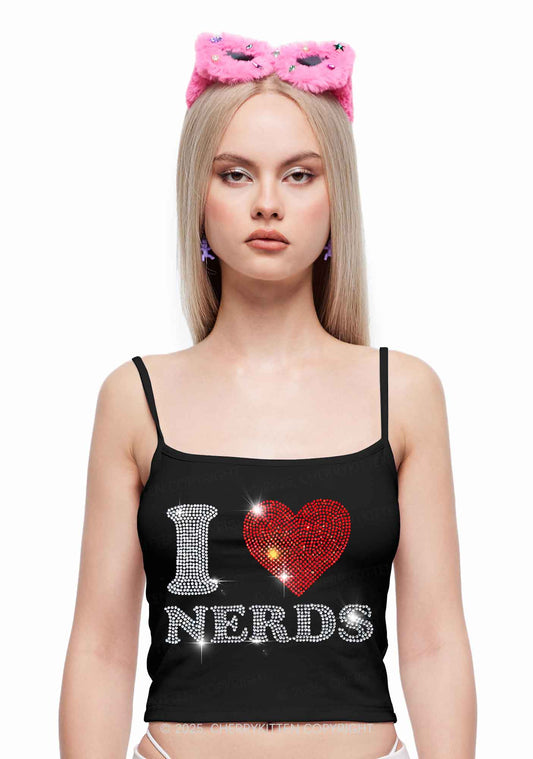 Rhinestone I Love Nerds Y2K Spaghetti Strap Cami Cherrykitten