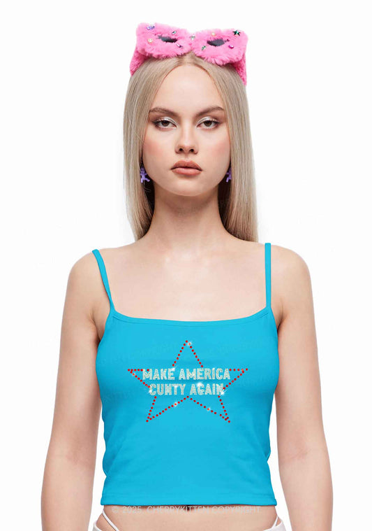 Rhinestone Make America Cxxty Again Y2K Spaghetti Strap Cami Cherrykitten